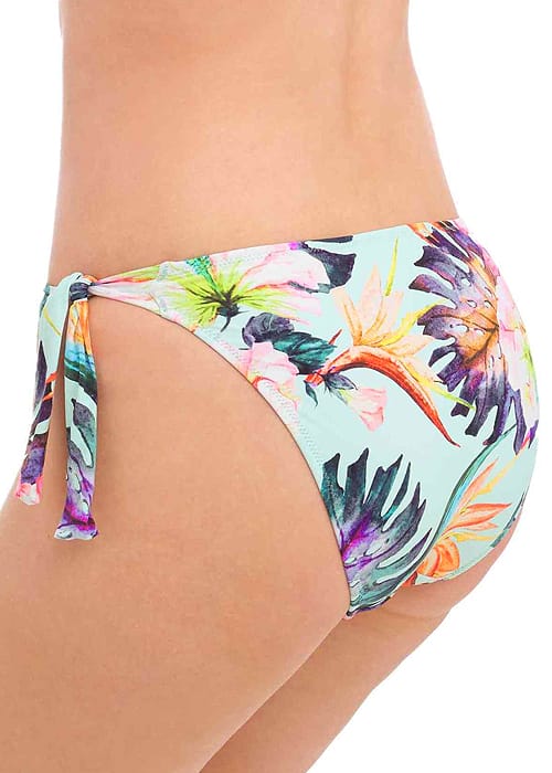 The Paradiso collection is one of the most stylish and colourful in the new Fantasie range and we adore them. The mint green backdrop is stylish enough by itself, but it also acts as a launch pad to the rest of the print, making the rich and deep colours of the brief stand out beautifully. The side ties make it perfect for getting a custom fit, and the material is fully lined. Matching top available.